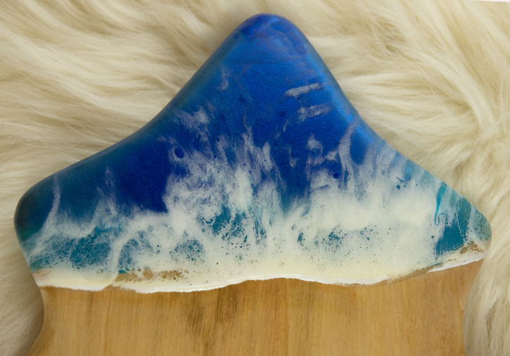 Crafted from Camphor Laurel wood and enhanced with rich resin detail, this handmade cheeseboard/dessert board is designed to make your Christmas gatherings extra special. Its natural beauty and ocean-inspired resin finish make it a stunning addition to your festive table or a thoughtful gift under the tree.